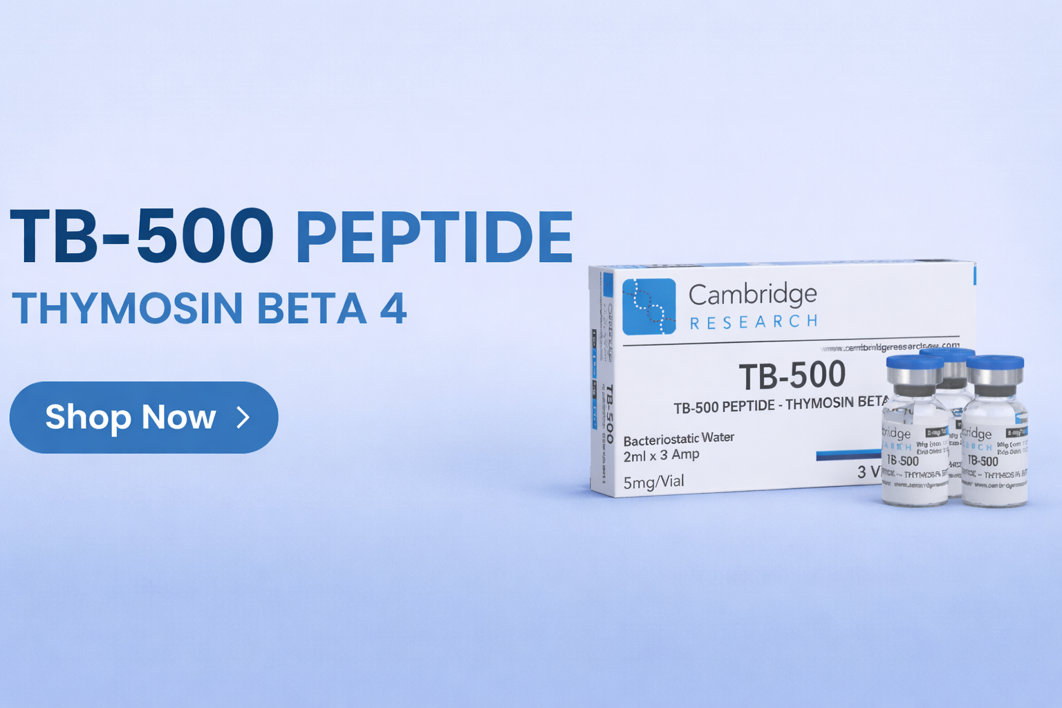 TB-500 (Thymosin Beta-4) is a premium research-grade peptide widely used in laboratory studies for tissue repair, wound healing, and cellular regeneration. Each pack contains three vials of 5mg each, ensuring consistent quality and reliable results for your research projects. This peptide is rigorously tested to meet laboratory standards, making it suitable for scientific experimentation and peptide research.